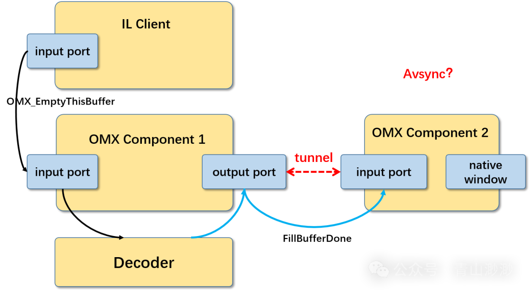 IL Spec定义的是通用Tunnel Mode,是任意两个组件隧道连接的标准。Android上的Tunnel Mode用于OMX组件与渲染组件之间,只有在解码渲染流程会使用。