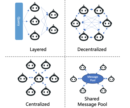 下图显示了多智能体系统中的四种典型交互结构。