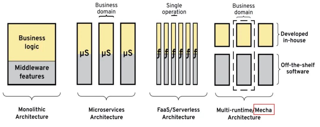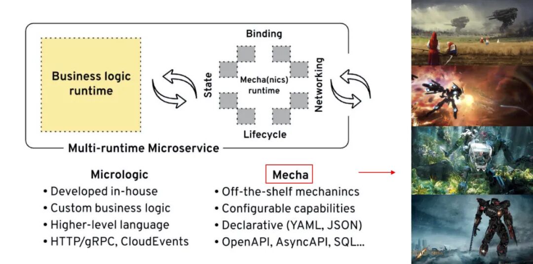 对多运行时微服务架构和 Mecha 的说明: