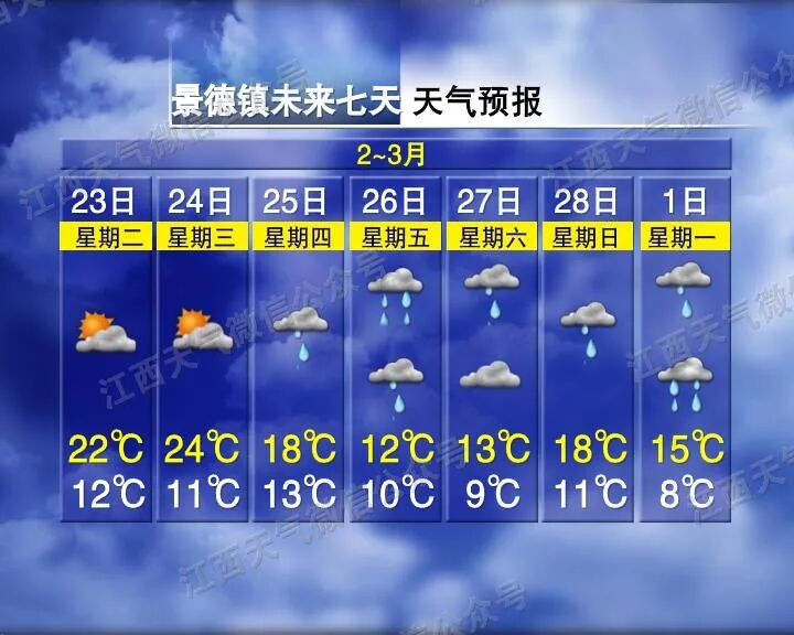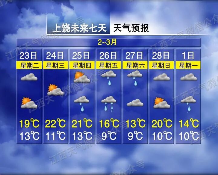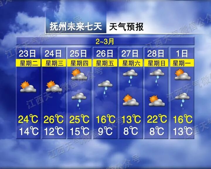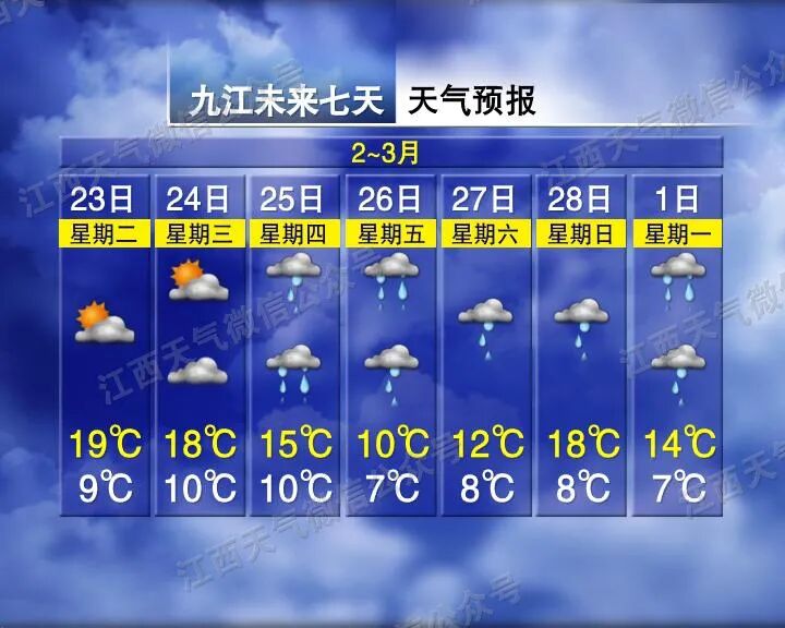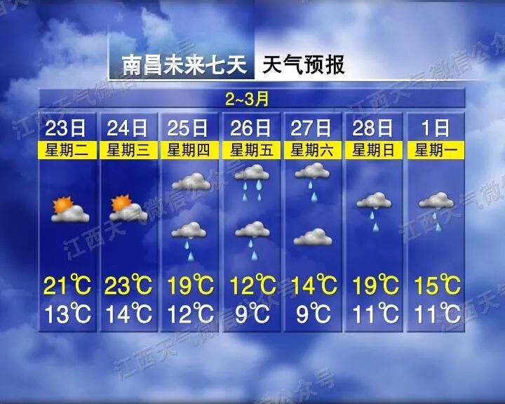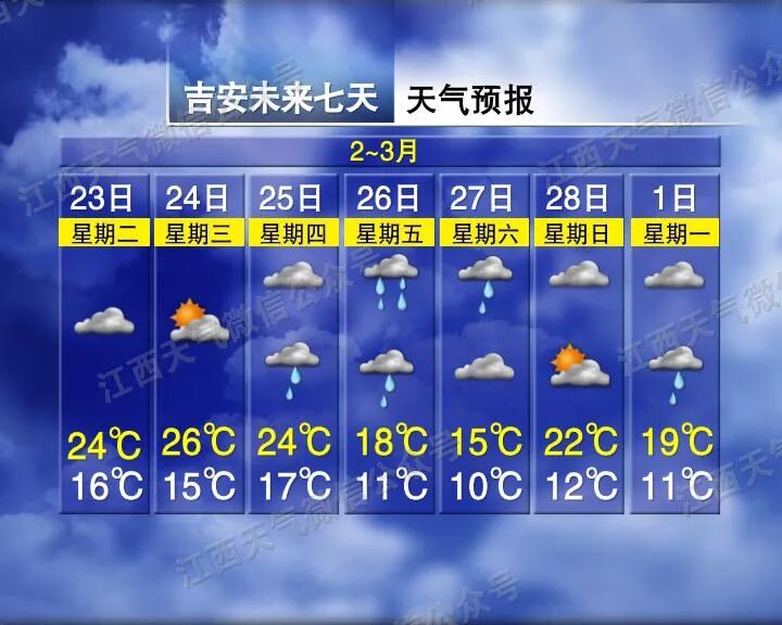 赣北赣中多云转小雨,赣南多云转阴。
