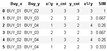 这里同步行为次数是基于商户(约束条件)去重作统计的,即A和B对同一个商家Y在不同时间段有多次匹配行为时,只算作一次。我们也可以考虑不对商家作去重处理,不过需要注意的是在杰斯卡相似度计算过程用到的x_cnt等指标逻辑也要保持一致,要么都去重,要么都不去重,我在这块处理上也搞错过。如果采用不去重法得到的应是: