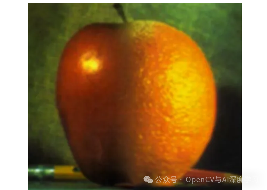 注意苹果和橙子融合的平滑过渡。虽然这看起来仍然不真实,但这当然是我们比未融合图像更喜欢的。拉普拉斯金字塔图像融合将允许我们做到这一点: 拉普拉斯金字塔图像混合并不局限于图像中间部分的混合。它可以帮助混合轮廓,并以各种方式合并图像。