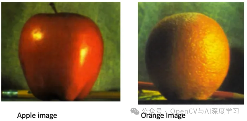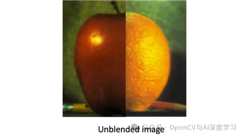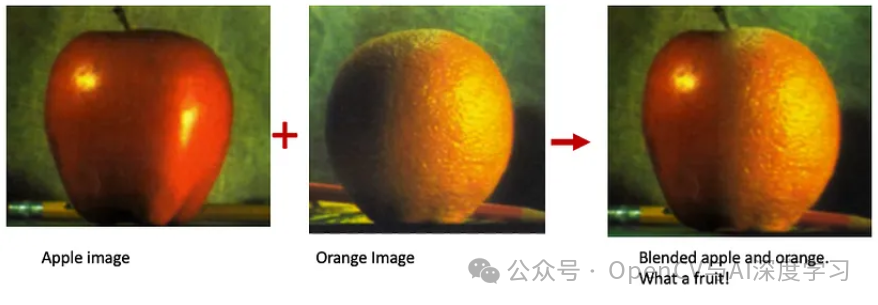 如果您想要将两张图像混合成半个苹果、半个橙子的图像,那么您可以取苹果的左半部分并将其与橙子的右半部分并排组合在一起。![]()