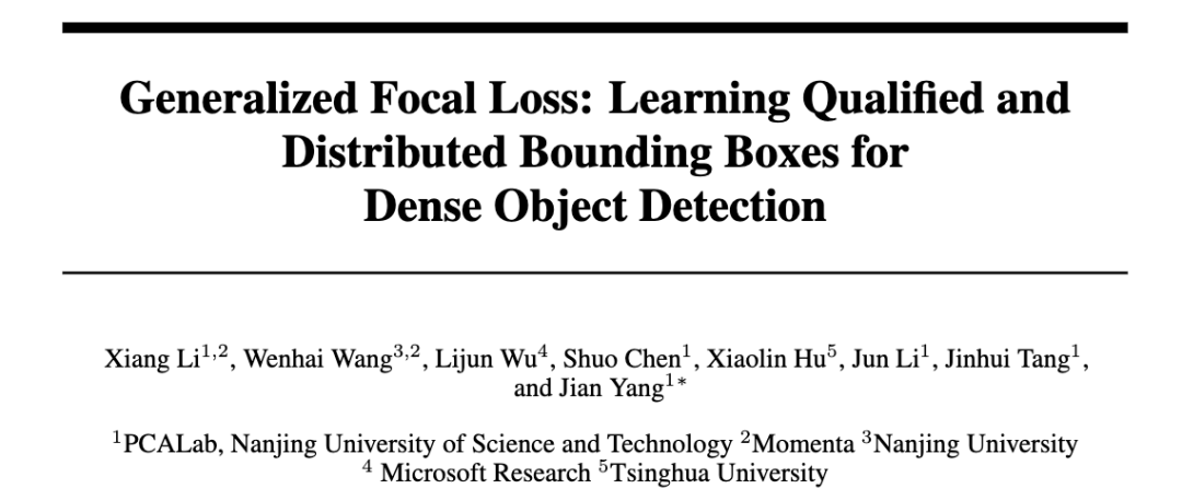 论文: Generalized Focal Loss: Learning Qualified and Distributed Bounding Boxes for Dense Object Detection