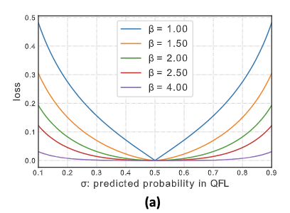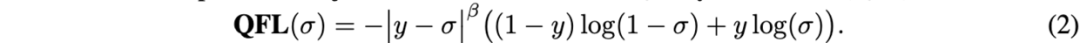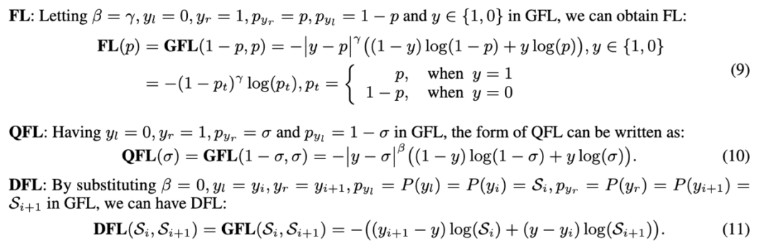 QFL和DFL可统一地表示为GFL,假定值和的预测概率分别为和,最终的预测结果为,GT标签为,满足,将作为缩放因子,GFL的公式为: