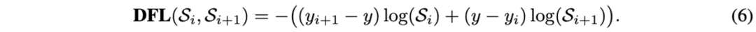 但实际上,同一个积分结果可由多种不同分布所得,会降低网络学习的效率。考虑到更多的分布应该集中于回归目标的附近,论文提出DFL来强制网络提高最接近的和的概率,由于回归预测不涉及正负样本不平衡的问题,所以DFL仅需要交叉熵部分: