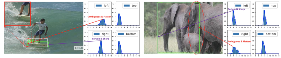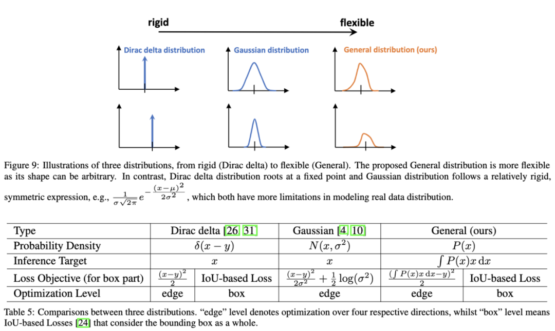如前面说到的,这种方法没有体现预测框的真实分布,不能提供更多的信息,所以论文打算将其表示为general的分布。给定标签的取值范围,可像Dirac delta分布那样从建模的genreal分布得到预测值: