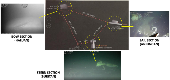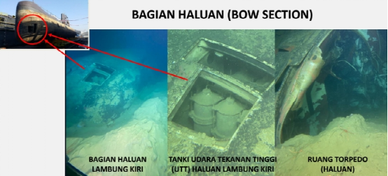 当地时间5月18日上午,印尼海军与中国赴印尼援潜救生舰艇编队在巴厘岛召开联合新闻发布会,深圳卫视直新闻作为唯一出席的中国媒体在现场进行了报道。截至当天,中方完成第一阶段的勘测任务,取得阶段性成果。深圳卫视直新闻记者注意到,目前围绕“南伽拉”402号的残骸划定了一个长3.7公里、宽2.5公里的勘测与打捞区间,而失事潜艇断裂成舰艏(Bow Section)、舰桥(Sail Section)与舰艉(Stern Section)三部分,坐沉于一个直径38米的海底火山口附近。中方发言人中国驻印尼大使馆国防武官陈永靖表示,4月21日,“南伽拉”402号潜艇在巴厘岛以北海域执行训练任务期间失联,引起中方高层的高度重视和关切。印尼宣布潜艇失事后,习近平主席在第一时间向佐科总统致慰问电,魏凤和国务委员兼国防部长向普拉博沃国防部长表示慰问。中方于4月26日派出海军舰艇编队前往失事海域协助救援。5月1日,编队抵达现场,立即与印尼海军舰艇建立实时通联;5月5日,编队与中科院“探索二号”科考船会合后,迅速开展水下目标勘察,并通过中国驻印尼使馆武官处与印尼军方建立现场通联、资料物品移交等业务交流机制。据发言人介绍,参与此次救援任务的中方舰艇编队由海军南拖195船、863船以及中科院“探索二号”科考船组成,编队特别加强了潜水分队、医疗分队、搜救特装操作分队等数十人。迄今为止,“探索二号”所搭载的“深海勇士”号潜水器累计进行水下作业13次,基本摸清了失事潜艇残骸水下状态,收集了大量图片视频资料,成功打捞出轻型部件如救生筏等物品,并及时移交印尼方面。深圳卫视直新闻记者注意到,印尼军方在记者会现场就展示了部分潜艇残骸,包括雷达警告接收机天线、水听器阵列部件、艇上技术手册以及艇员救生衣等。失事潜艇艇艏,来源:联合新闻发布会印尼军方公开资料失事潜艇舰桥,来源:联合新闻发布会印尼军方公开资料失事潜艇艇艉,来源:联合新闻发布会印尼军方公开资料失事潜艇技术手册,来源:联合新闻发布会印尼军方公开资料![]()