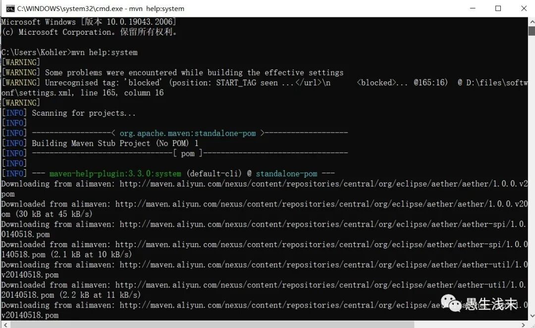 配置完成,win+R运行cmd,输入mvn help:system测试,配置成功则本地仓库(D:\files\software\apache-maven-3.5.4\repository)中会出现一些文件