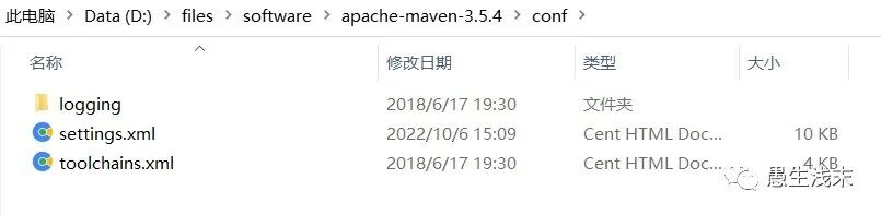 在路径D:\files\software\apache-maven-3.5.4\conf下找到settings.xml文件(用记事本打开)