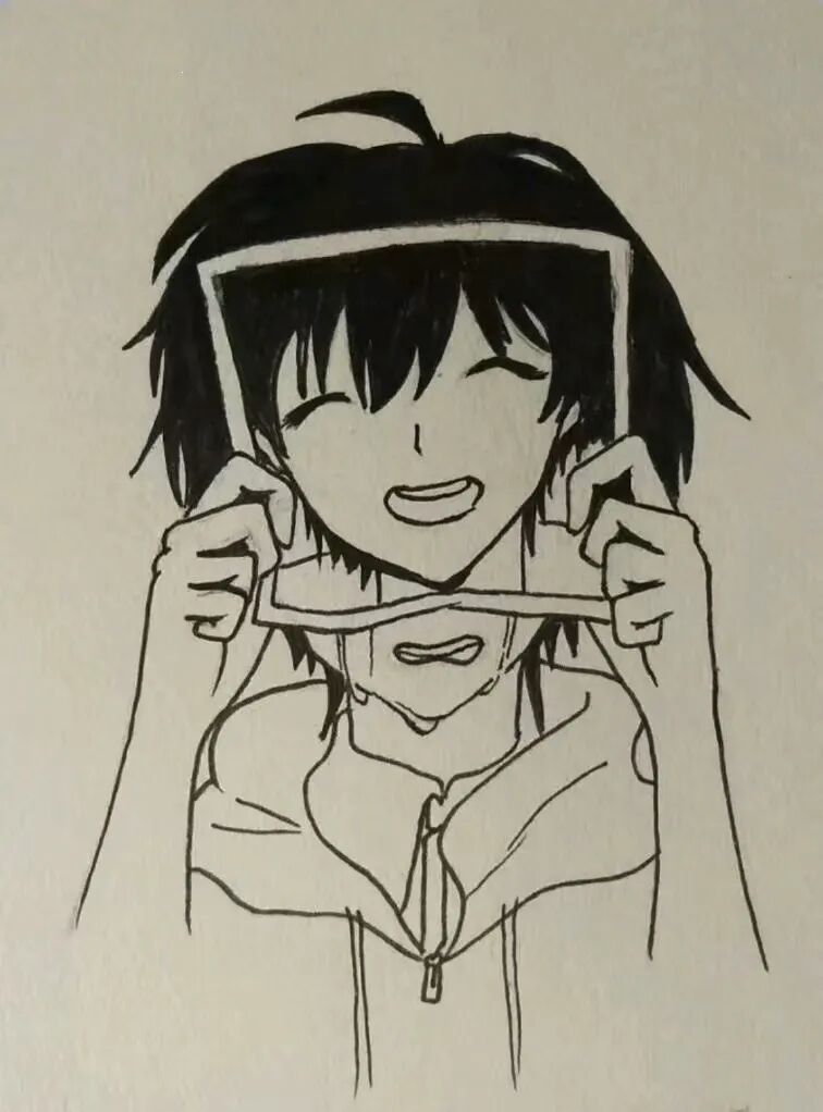 3月10日上天台那晚,浩宇在QQ空间里发:“世界,晚安。”配图是他画的一个男孩,手举一张笑脸,背后,眼泪流下来。