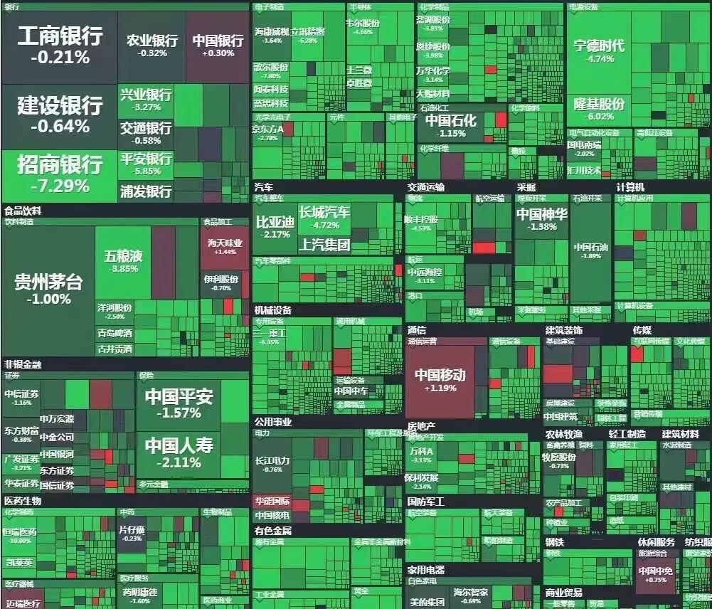 今天A股整体上跌幅中位数是8.5%,2400股跌幅在8.5%以上,3000股跌幅在7%以上,幸好,几百ST股涨跌幅限制在5%,不然,这个数据会更加令人绝望。