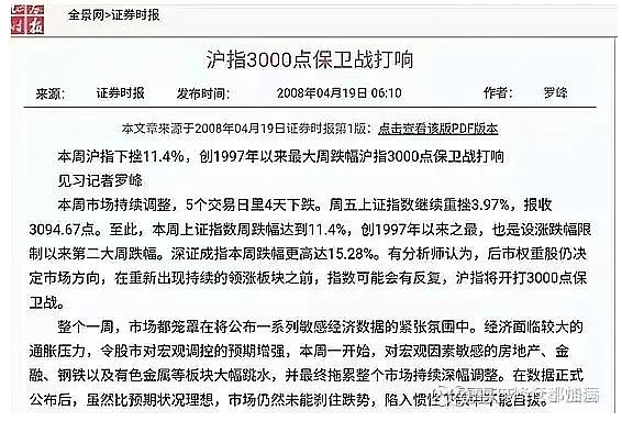 回望2008年,保卫沪指3000点,喊得震天响,时候看,那就是螳臂当车,3000点不但没守住,后来一度跌到1820点。