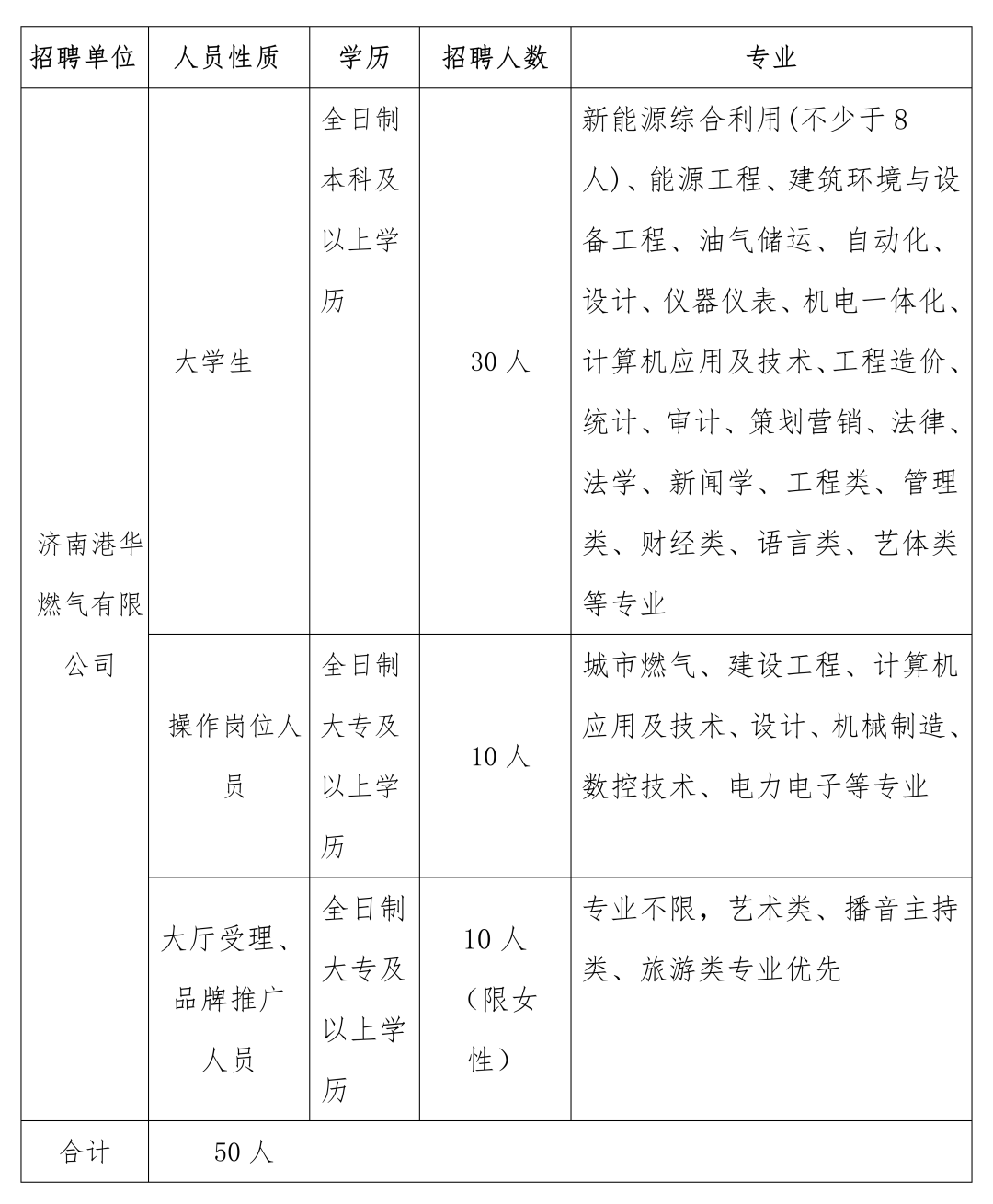 本招聘简章解释权归济南港华燃气有限公司人力资源部。