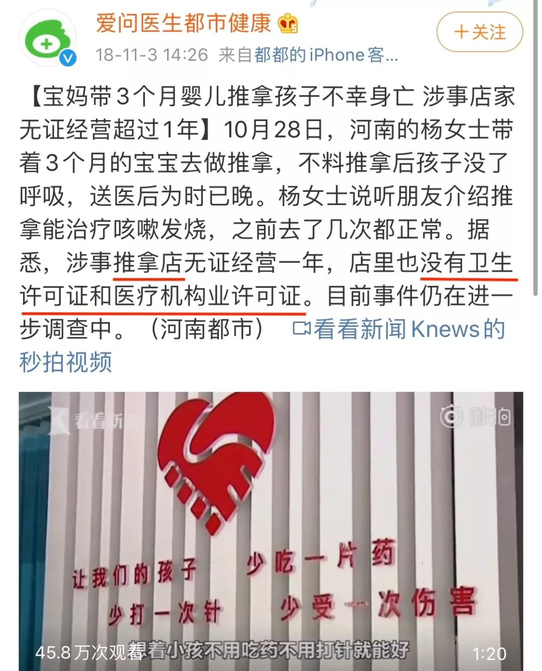 事情发生在推拿之后,不等于就是推拿直接导致的死亡,那是不是说明小儿推拿就没有危害呢?并不是,看看下面这些例子。