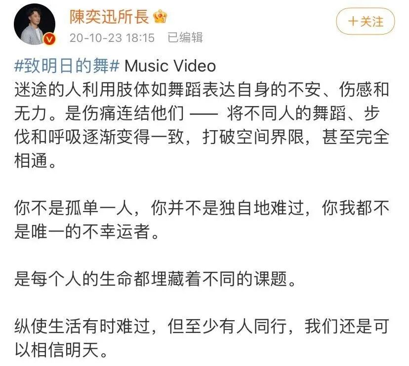 10月21日,时隔两年,他发布了一首粤语新歌《致明日的舞》。