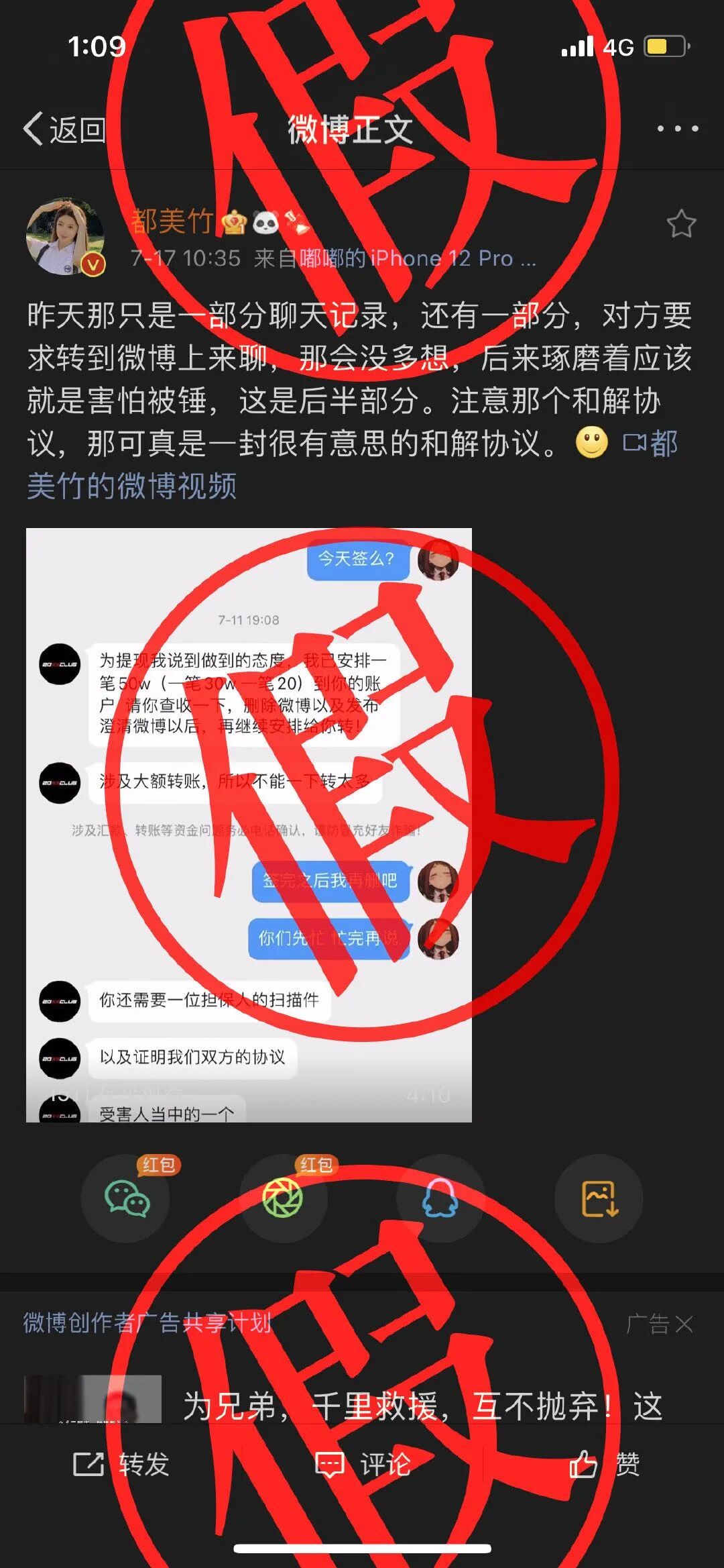 ·节选自都美竹7月8日微博发文。