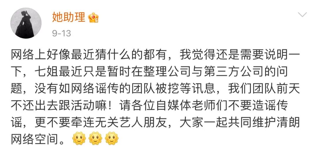 其实早在8月26日,李子柒的助理就曾发布微博回应关于断更的问题:“七姐这几年埋头做内容忽略了很多现实问题的东西,现在需要整理清楚。也相信都会好好整理清楚。”