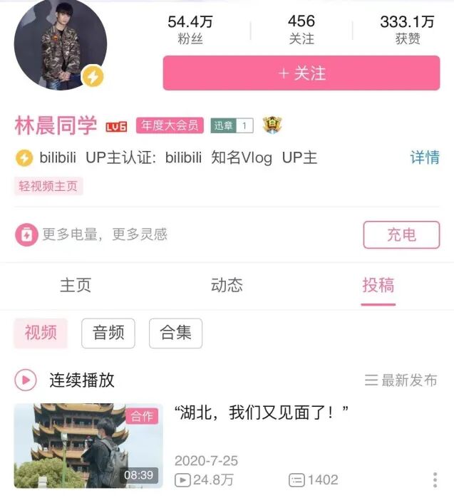B站UP主“林晨同学”就是其中一位。去年疫情期间,身在武汉的“林晨同学”将封城以后的武汉街景拍成了Vlog发到了B站上,播放量破千万,账号迅速积累了十几万粉丝。一家MCN公司找到了他,向他递上了一份合作协议,承诺公司将会给他提供充足的资源支持,并有一定的分成。