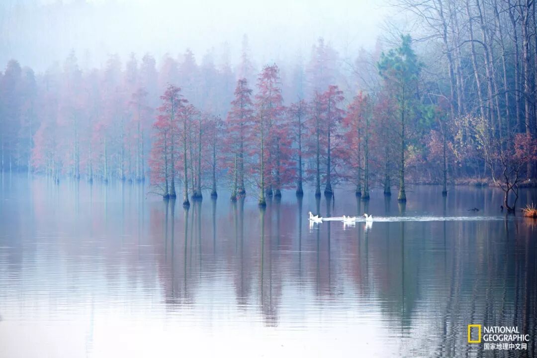 不论是静谧的湖面,还是流动的小溪流,树影将斑斓色彩投影其间,都如同揉碎了的美梦一般充满诗情画意。