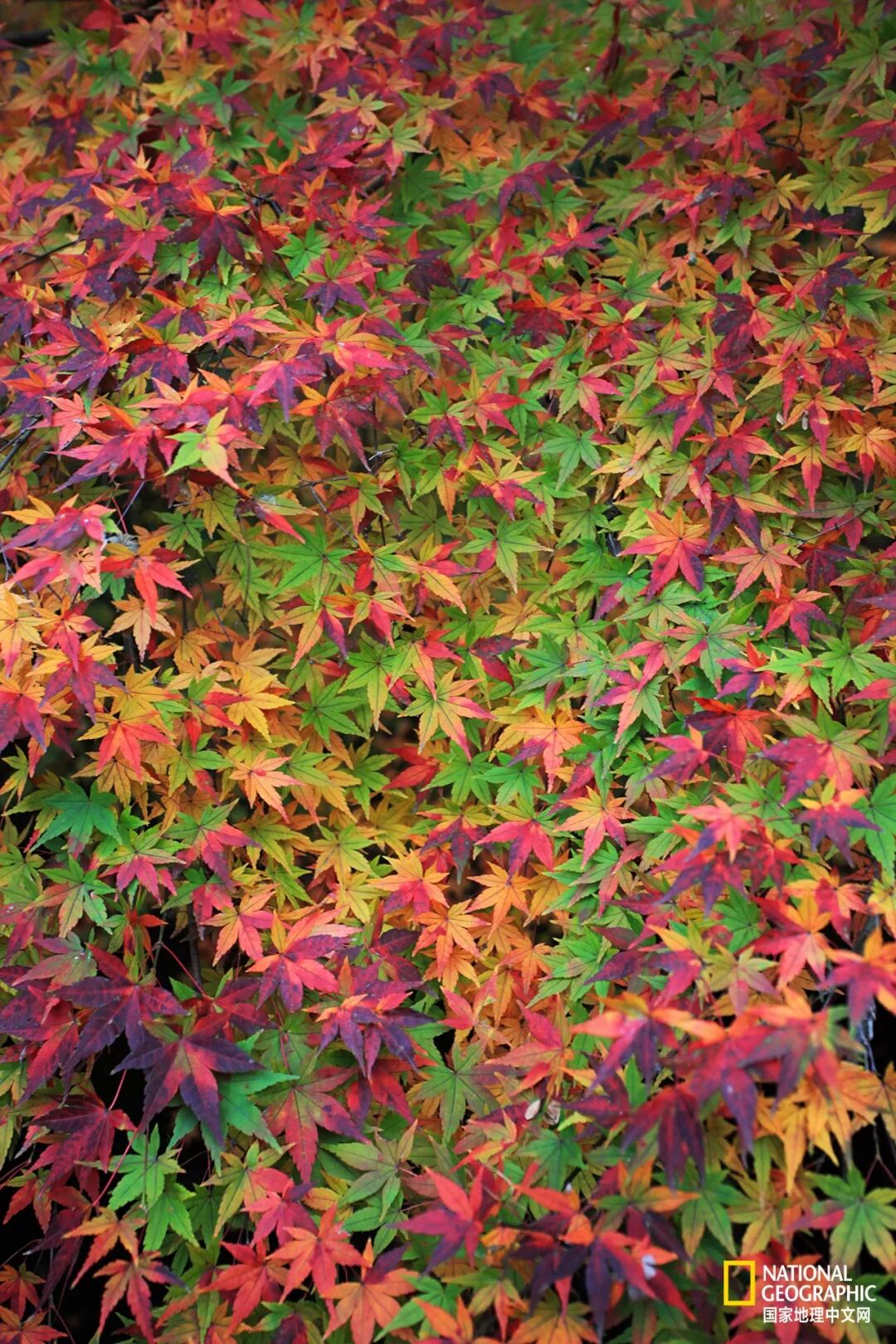 “醉秋”,说的是秋的变化类似于微醺的过程。在这个过程中,同一棵树叶子色彩的渐变、不同植物色彩的差异、落叶的鲜妍与根部的对比,都是值得用镜头去记录描绘的。在这样的对比过程中,愈加体现秋色的微妙变化。