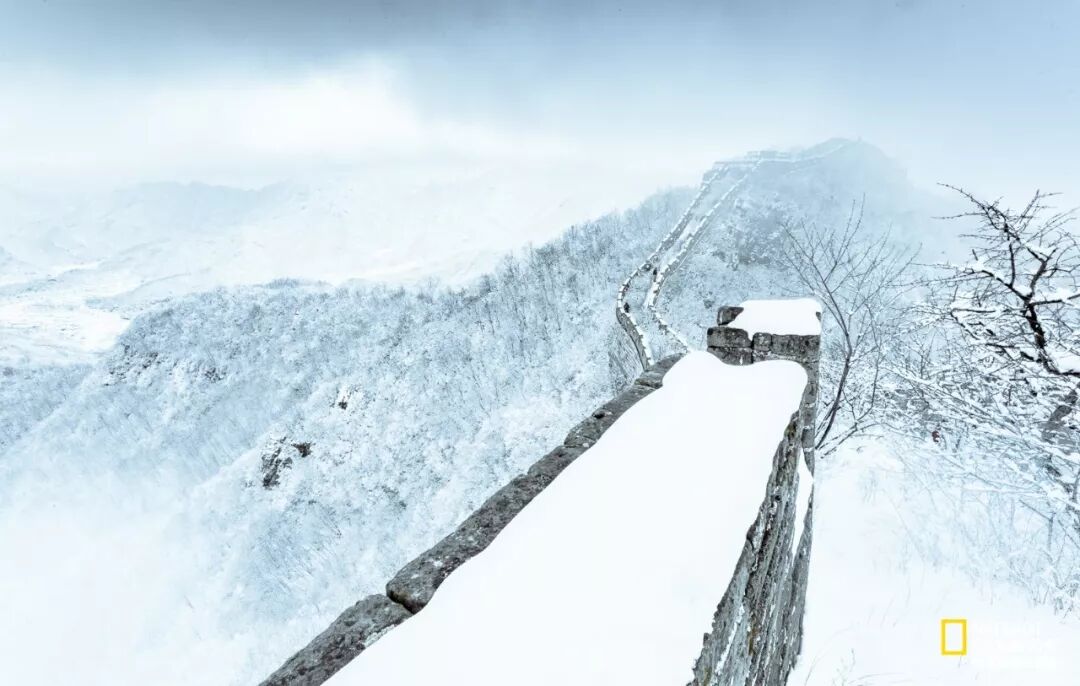 在拍摄长城这样的大型建筑中,我总喜欢在雪后开始拍摄,周围群山已经简化成为一片白色。