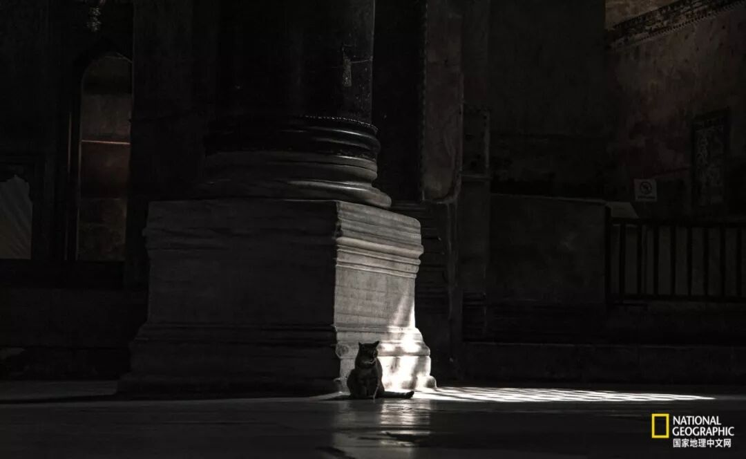 伊斯坦布尔苏菲亚大教堂,神圣殿堂中游人都不能进入的地方,流浪猫坐在那里。