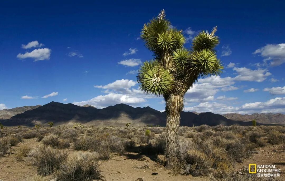 内华达州东部地带公路上,一棵约书亚树矗立在51区东部边界。