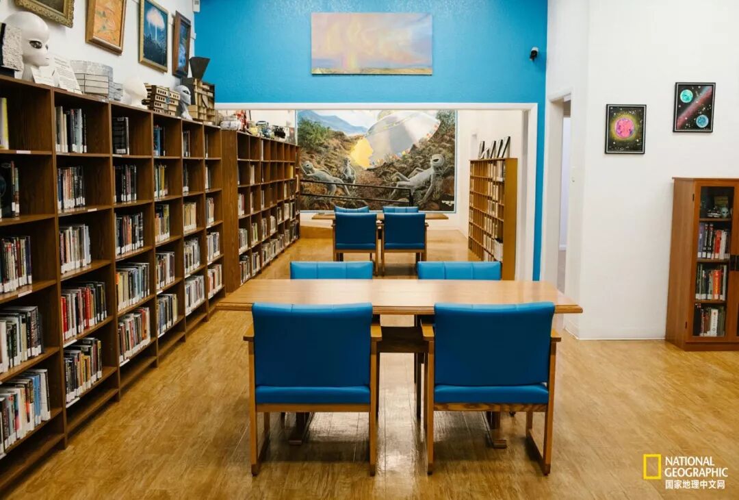 图片拍摄自新墨西哥州罗斯威尔UFO博物馆。该馆于1992年向公众开放收藏有大量关于外星生命遭遇和相关现象的参考资料。
