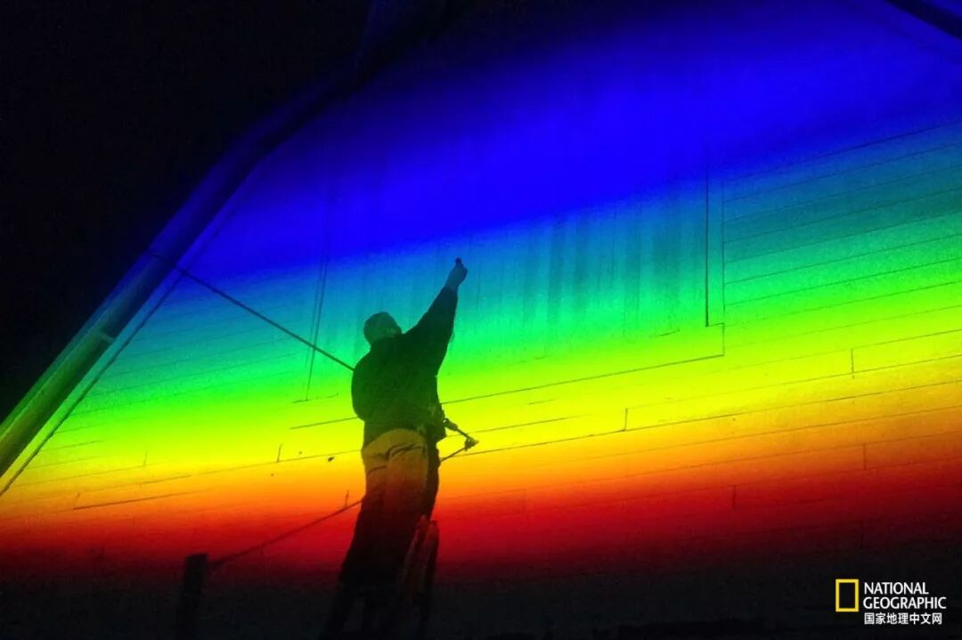 2015年,Smilde开始构思一个新的项目。那时候,他经常摆弄一个放在工作室里的小棱镜,来回来去地翻转,看它是如何将白光变成一道彩虹,并把墙体都染成彩色。
