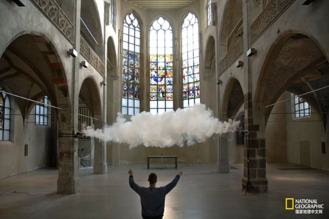 在实验室一通捣鼓后,Berndnaut Smilde真的“凭空”创造出了云和彩虹。