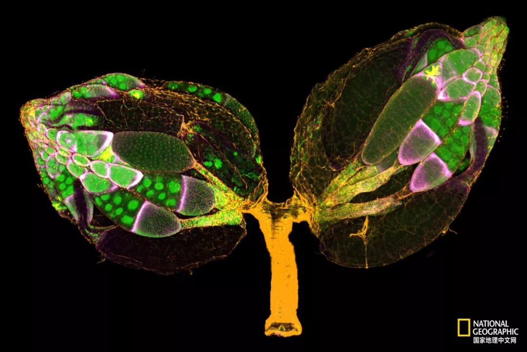 显微镜技术专家特蕾莎·戈达和学生特蕾莎·库格勒不辞辛苦,将数百张图像拼接在一起,最终合成了这张荧光龟胚胎图像。胚胎经过染色,以此来区分不同的组织。