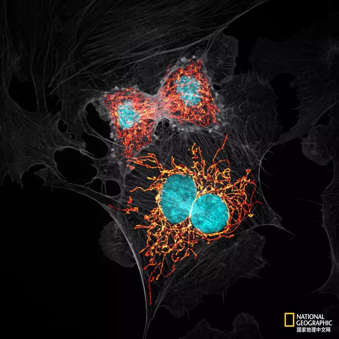 1979年,研究人员利用从一头年轻奶牛的肺动脉中提取的细胞培育出了用于研究心脏病的细胞系。这张照片由贝勒医学院的杰森·柯克拍摄,他捕捉到了其中两个正在分裂的细胞。