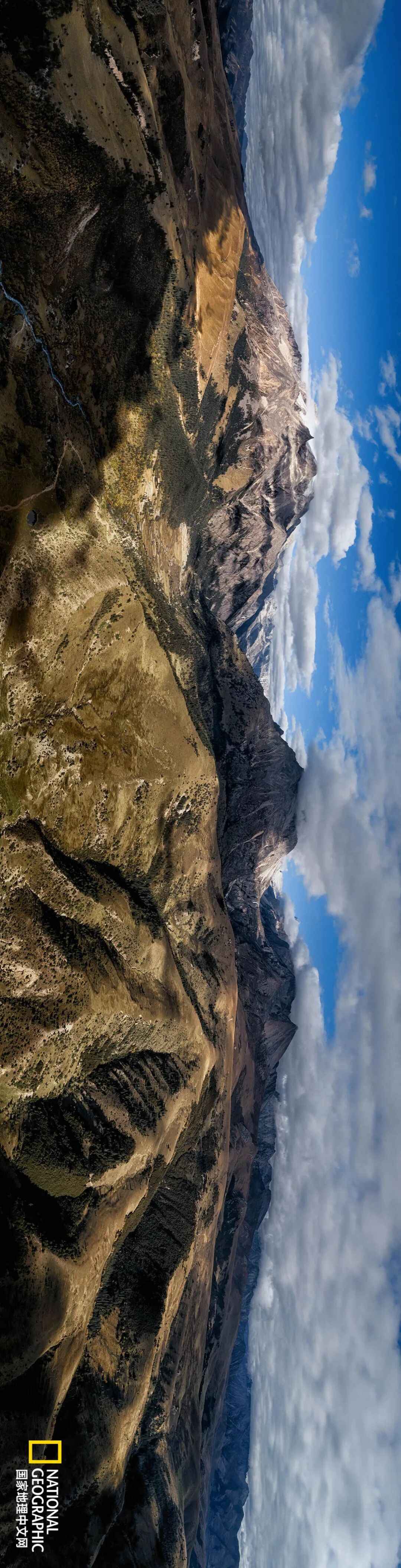 虎皮坝右侧的山脉,像一条青龙从草地腾空而起,故取名“青龙冲天”。龙须和龙角伸到了格聂雪山的颈部位置,一对刺向半空的龙角寒光熠熠,长长的尾巴伸到河边↓↓