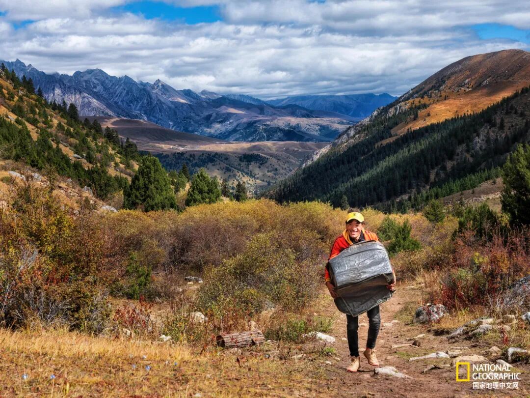 沿车木喇嘛峡谷向上走,马匹不慎将物资掉落,藏族小伙双珠笑着把行李捡回。