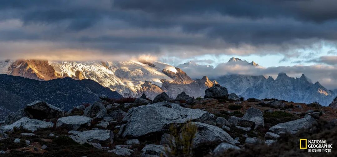 黎明来临前的雪山清冷玄幻,当天际被厚厚的云层覆盖时,雪山也从睡梦中醒来。