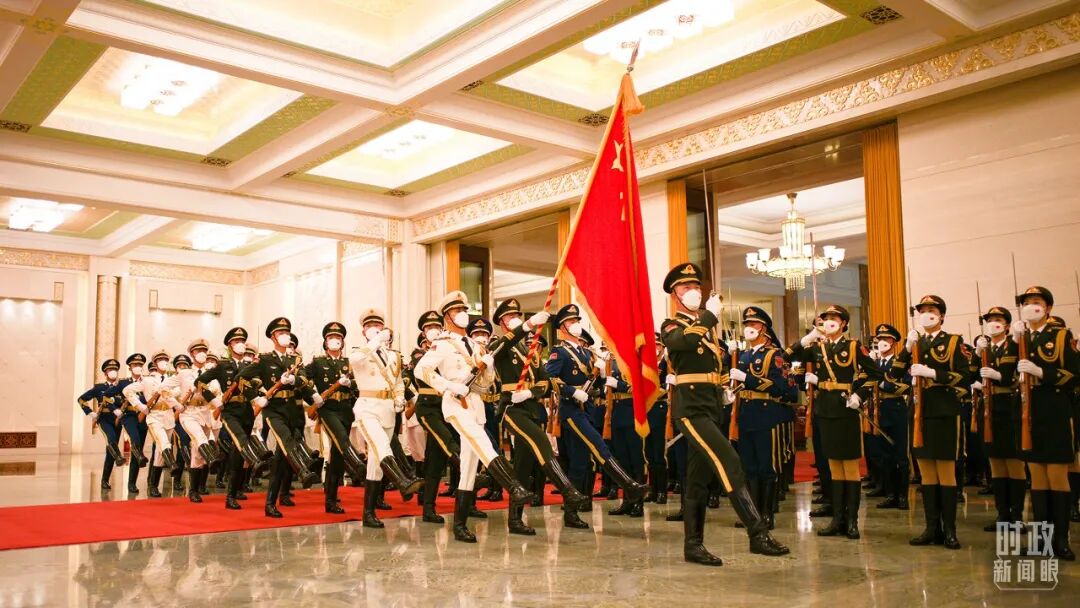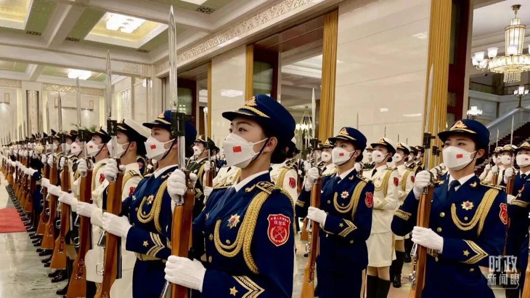 △欢迎仪式开始前,正在演练的三军仪仗队。(总台央视记者王威、章猛拍摄)