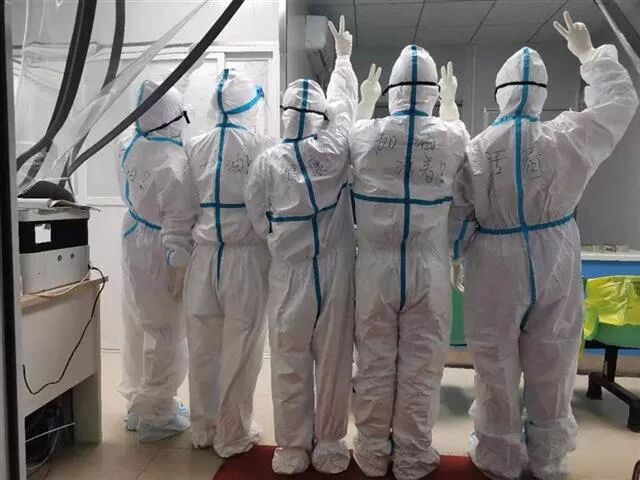 2020年1月24日夜晚,正在接诊的我突然胸口憋闷,一阵恶心,感觉有东西往喉咙涌。憋着憋着,实在想吐,我大喊一声“我要吐了!”为了不污染防护服,不影响病人情绪,我和主任交代了一声,就立马冲进缓冲区,脱下防护服,摘下护目镜和口罩,在污物桶里呕吐了起来。 半小时左右,感觉好些了,能睁眼了,能起来了。这时一位护士进来问我:“还好吧?”我开玩笑说:“死不了,我还行!”起来,穿防护服,继续回到岗位,和战友并肩作战!2020年1月25日凌晨。大年初一,趁着没病人,战友们穿着隔离服互相祝福着。有人提议,把最想说的话互相写在衣服背后。提议很好,大家轮流写着:“活着!”“加油!”“健康!”……励志、心酸、坚强……各种感情融合着。大家会心地对视一笑,心里默默祈祷着愿望成真。