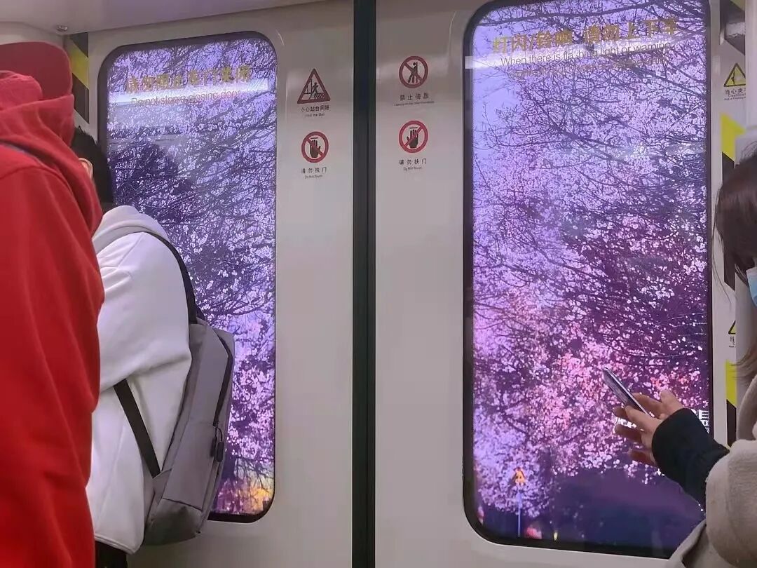 地铁上,乍一抬头,以为自己误入桃花源。你看那花,开盛了。