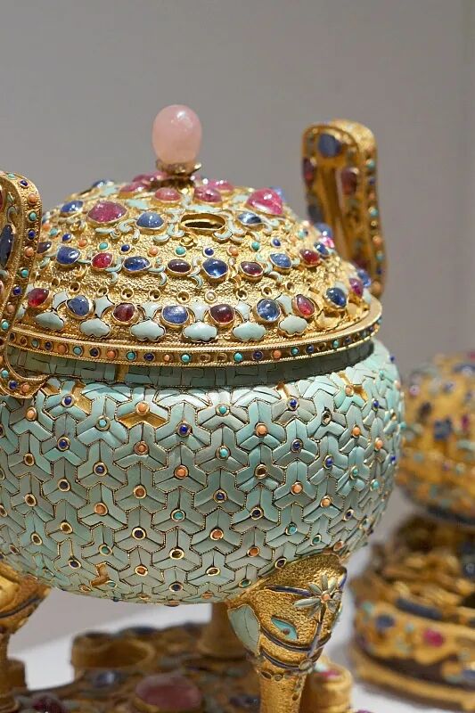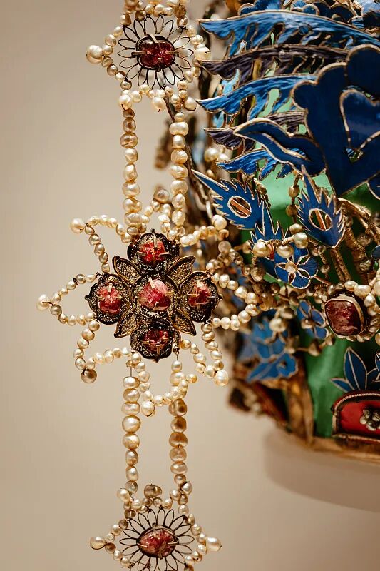 流翠的头饰凤冠,淡雅温润的青瓷,