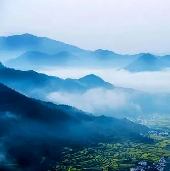 夕阳薄雾罩远山现紫色,名为“暮山紫”;