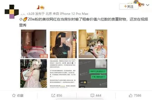 半年之后,谈小姐竟无意中在社交媒体平台发现,一个拥有二十几万粉丝的网红美妆博主晒出的名贵衣物首饰竟然与自己失窃的物品一模一样,而这名博主不是别人,正是曾经租房给自己的前房东。