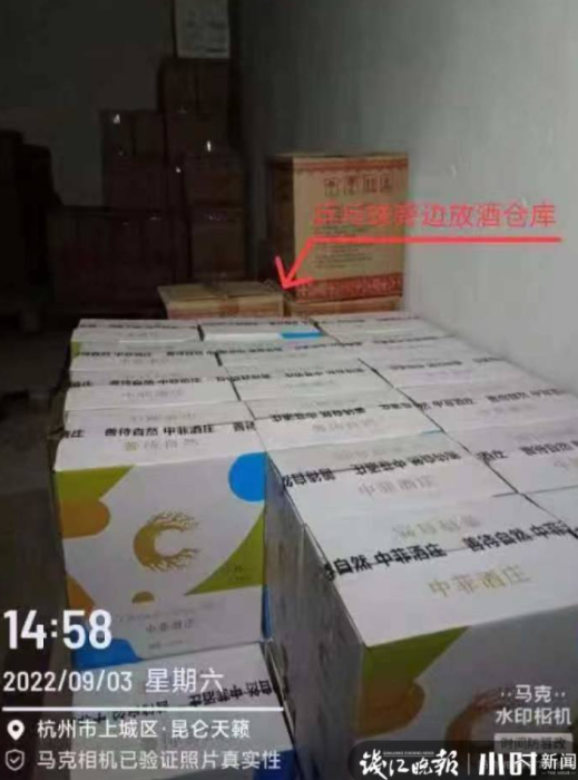 “当时我们想把脏的地方、违规的地方拍下来。我们看到有个门有点破还上着锁,就上去掰,结果掰开了,用手电筒照照,发现都是酒。”