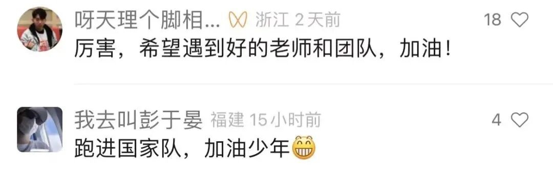 “跑进国家队,加油少年!”