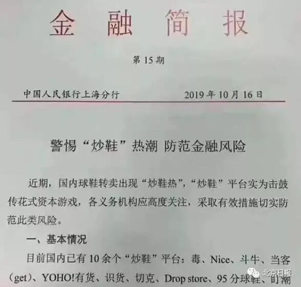 更早的2019年10月,在炒鞋市场疯狂数月后,央行上海分行发文《警惕“炒鞋”热潮防范金融风险》指出,国内球鞋转卖出现炒鞋热,炒鞋平台实为击鼓传花式资本游戏,并且点名批评了10余个炒鞋平台。彼时,还未更名为得物的毒APP排在首位。