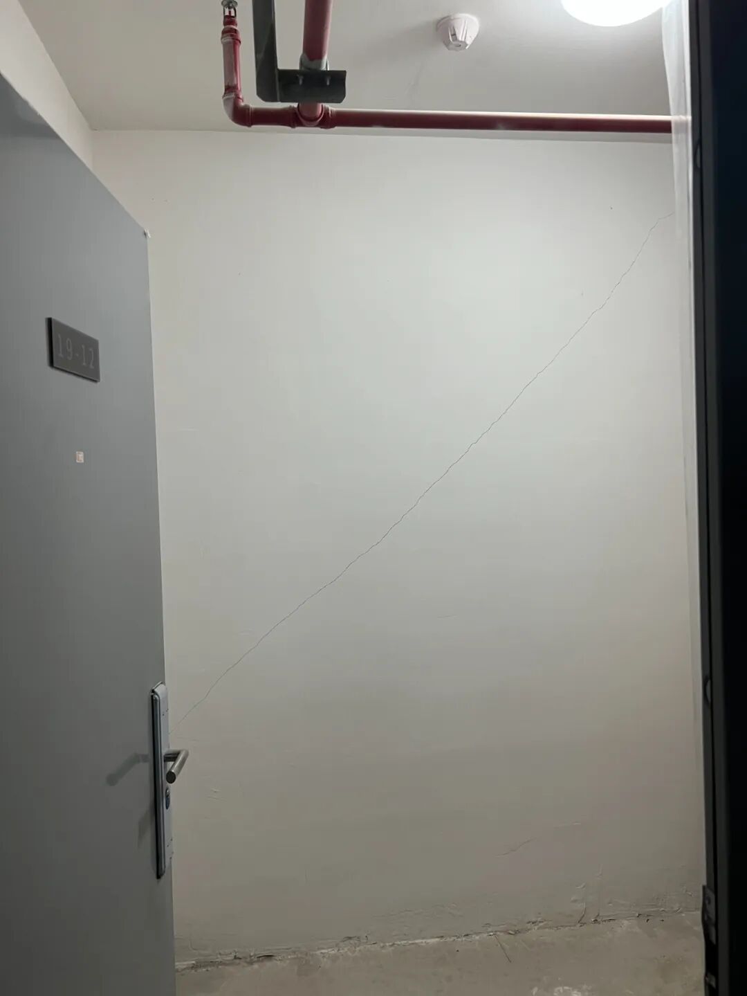 前几天有人发现这一情况,发在业主群里,就立马炸开了锅。小区其他业主强烈反对。“设备检修层并不是一楼的赠送面积,他们凭什么占用?况且,一楼业主私凿楼板的行为,还存在严重的安全隐患。”一名业主将钱江晚报·小时新闻记者带到了一间储藏室,指着墙壁上一道两三米长的裂缝说,这就是一楼业主施工后造成的后果。