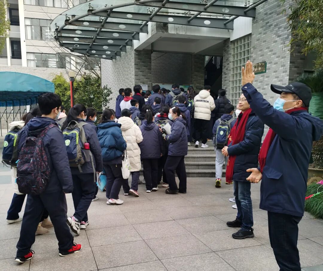杭师大附中的班主任老师和首门物理学考老师为学生加油