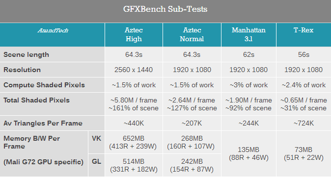 除了3DMARK之外,Kishonti的GFXBench多年来一直是行业标准,新的Aztec测试给我们带来了不同的工作量。不久前Kishonti发布了GFXBench的5.0版本,这个版本建立在新的渲染引擎上运行,并引入了High Tier和Normal Tier模式下的全新测试场景Aztec Ruins。新的测试更加考验着色性能,利用更复杂的效果来强调GPU的算术能力。