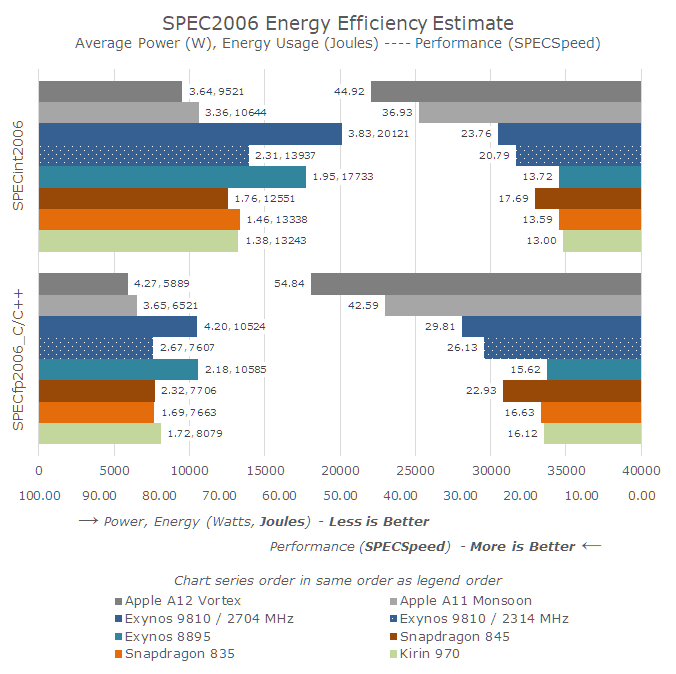 这也让我们对今年发布的三星M3 架构有了更好的认知,即只有当功耗在可控范围内时,更高的功耗才能带来更高的性能(Exynos 9810的功耗是苹果上代A11的2倍,但其性能却只有A11的一半)。