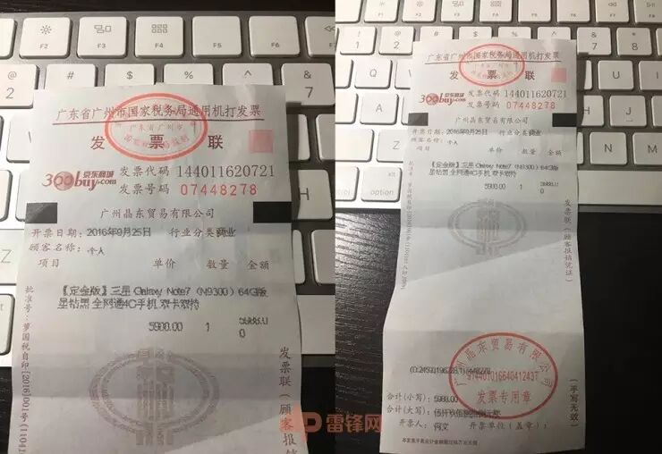 笔者:相关的购买凭证你是否有保留?能不能描述一下,你的这台国行Galaxy Note7到货的时间、地点以及到货后的使用情况?